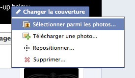 Si vous changez ou mettez à jour votre photo, passez simplement votre souris au dessus de la photo de couverture. Un menu « Changer la couverture » apparaîtra, vous offrant plusieurs options: sélectionner parmi des photos existantes, en télécharger une nouvelle, repositionner ou supprimer.